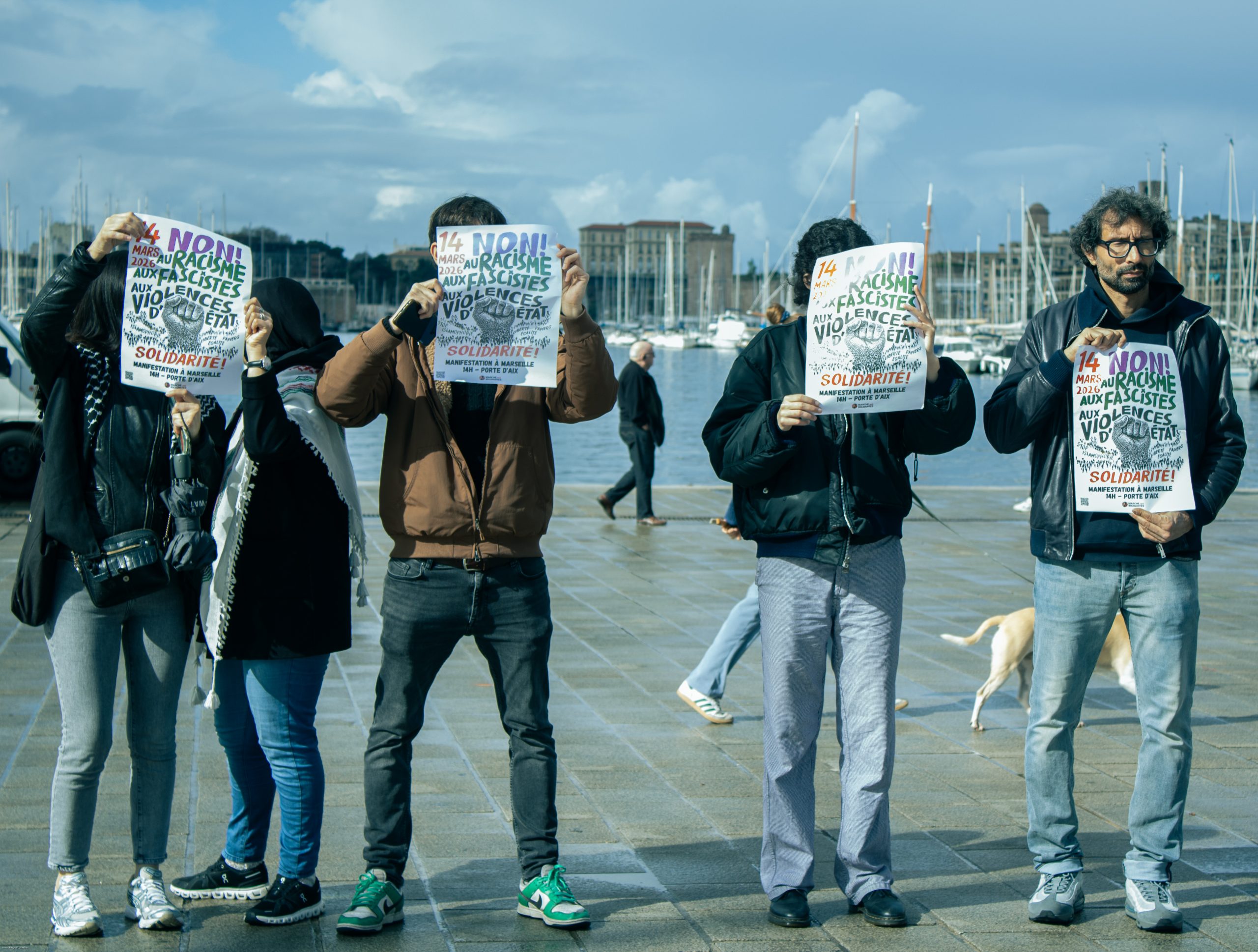 Mardi 10 mars à 10 heures, sur le Vieux-Port, cinq représentant·es d’organisations ont tenu une conférence de presse pour appeler à une mobilisation le 14 mars à Marseille. Derrière cette prise de parole publique, 60 organisations locales (associations, collectifs, syndicats…) portent un appel contre la montée du racisme, du fascisme et de l’islamophobie.